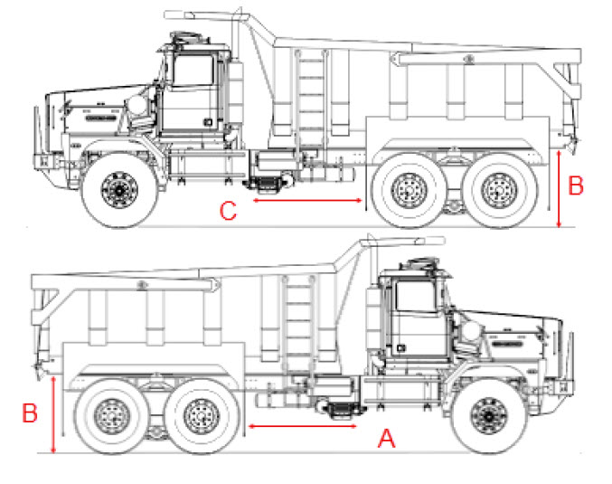 1. “A” – The distance between the front of the box and the rear wheels (Passenger side).